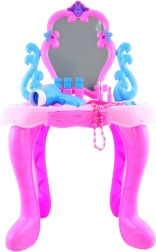 Questo splendido tavolino da toilette è ideale per tutte le piccole principesse. Il suo fascino deriva dal phon funzionante e dalla luce sulla parte superiore dello specchio, che si illumina e suona una volta inserite le batterie. Il set include un pettine, collane, 3 anelli, adesivi e altri accessori creativi.