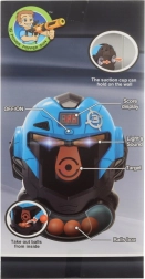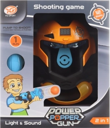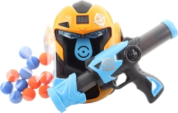 Set dettagliato con pistola a palline in foam e bersaglio a forma di maschera. Il bersaglio ha un contatore a batteria (2xAA - non incluse). Dopo l’inserimento delle batterie e il colpo al bersaglio, il contatore aggiunge i punti ed emette suoni. Materiale: plastica. Confezionato in scatola. Dimensioni della confezione ca. 25x29x14 cm. Età 8+