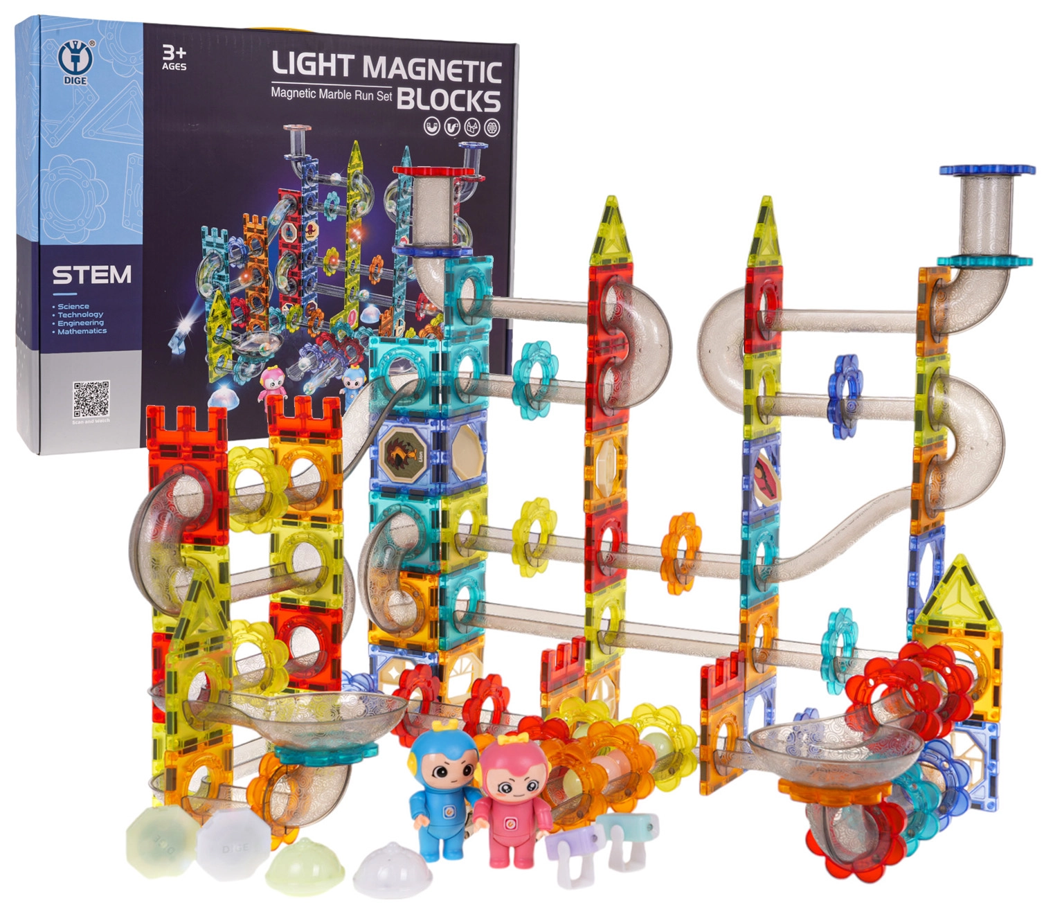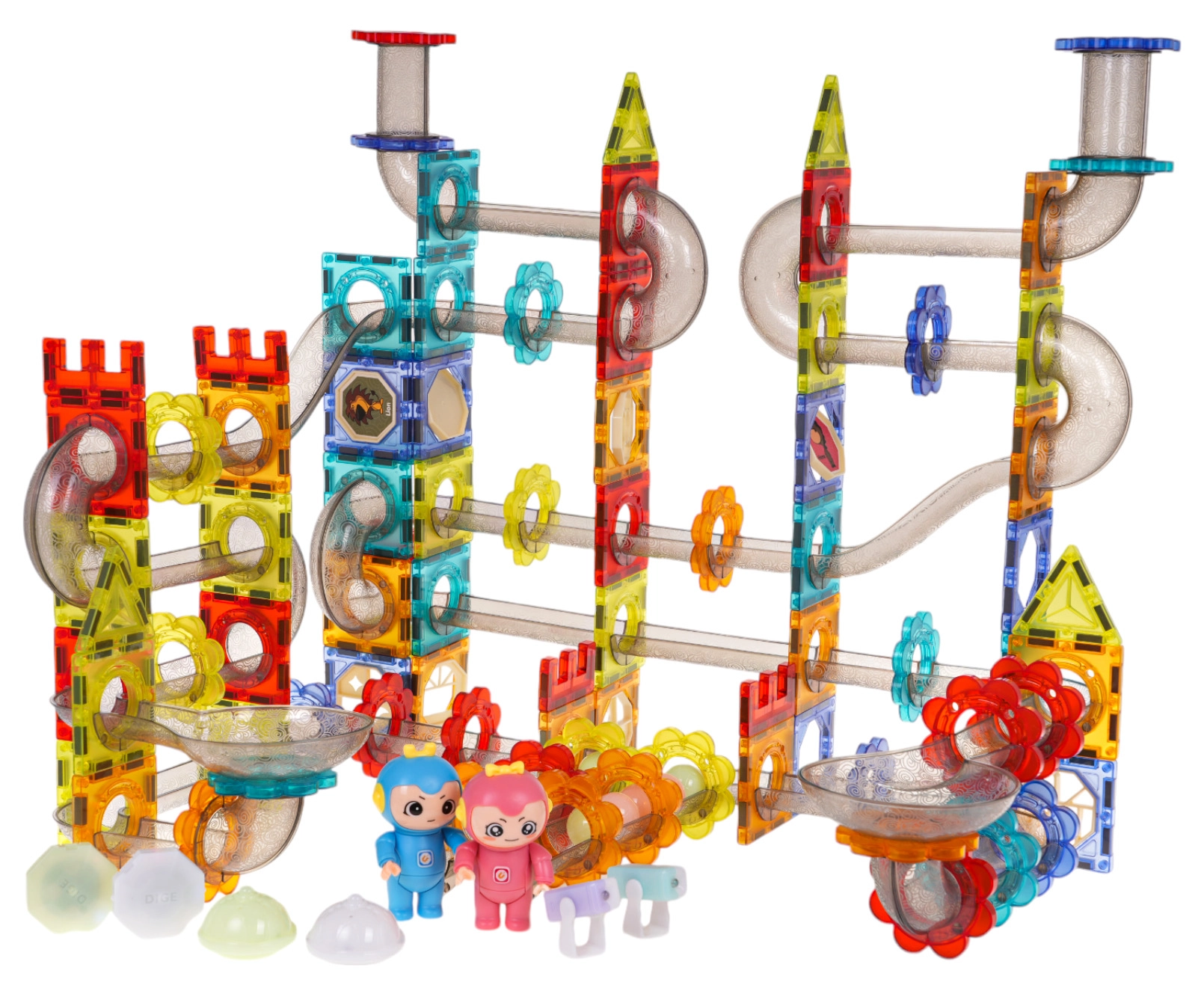 - Sviluppo della creatività: Il set include in totale 228 pezzi di diverse forme e colori, tra cui elementi trasparenti, biglie magnetiche, passaggi e molti altri accessori. Tutto ciò stimola la creatività e l’immaginazione dei bambini.