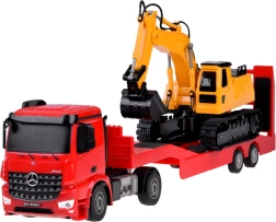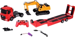 Rendi felici i piccoli costruttori con questo fantastico kit di costruzione a telecomando del marchio Mercedes-Benz, che offre divertimento realistico con un autocarro, un rimorchio e un escavatore in scala 1:26.
