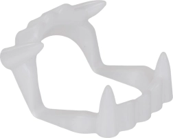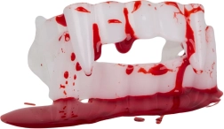 Denti bianchi con dettagli rossi imitano sangue fresco e donano al costume un marcato aspetto horror in un attimo.