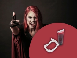 Il pratico tubetto di sangue finto consente di creare gocce e sbavature per una maschera da vampiro ancora più autentica.