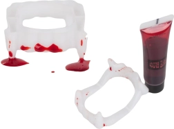 Trasformati in un vero vampiro in pochi secondi. Le zanne in plastica bianca con accenti rossi imitano il sangue fresco e, insieme al tubetto di sangue finto, creano un autentico effetto horror per trucco e costumi. Perfetto per Halloween, balli in maschera, feste a tema e progetti cinematografici o fotografici.
