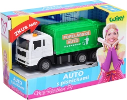 Preparati all'azione con il camion dei rifiuti di 17 cm, alimentato da un meccanismo a inerzia. Grazie agli effetti luminosi e sonori, offre un'esperienza realistica. I pulsanti sulla cabina attivano tre canzoni di Míša Růžičková: Spazzini, Polizia e Ambulanza.<08p>
