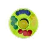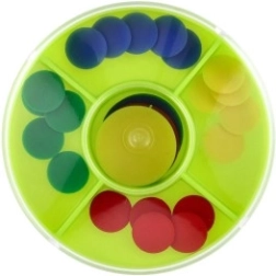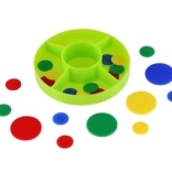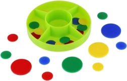 Il gioco aiuta i bambini a sviluppare la motricità fine attraverso la manipolazione di piccoli dischi.