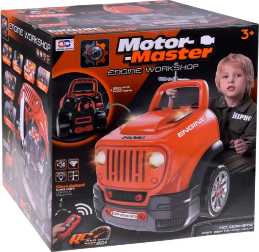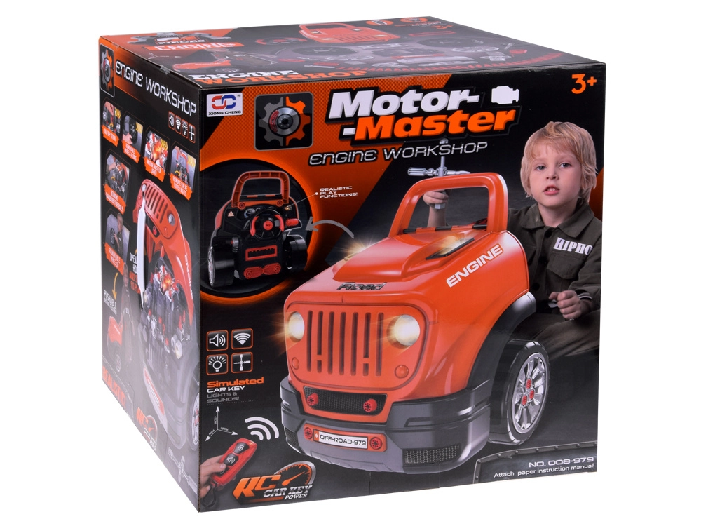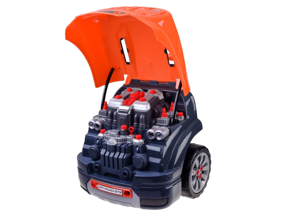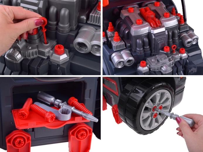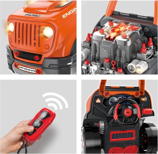 Il set da officina interattivo per piccoli meccanici simula realisticamente il lavoro in un’autofficina. I bambini possono aprire il cofano, smontare e rimontare il motore rimovibile, cambiare ruote e copricerchi, provare l’avviamento con pulsante e usare effetti sonori e luminosi – dal clacson e la retromarcia fino all’allarme e alle luci di emergenza.