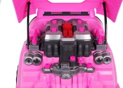 La parte anteriore interattiva con cruscotto e leva della “cambio” automatico offre ai bambini un’esperienza realistica di guida e assistenza. Alla pressione di start si sente il suono di avviamento; in marcia e in retromarcia si attivano effetti corrispondenti. Sotto il cofano c’è un grande motore smontabile, dove i piccoli meccanici possono cambiare “candele”, ruote e altri componenti.