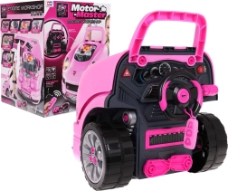 Scopri il divertente mondo dei motori e delle riparazioni con questa auto rosa interattiva per bambini dai 3 anni. I piccoli si divertiranno con il cofano apribile, il motore smontabile, il cockpit realistico con pulsante di avviamento, clacson e segnalatore di emergenza. Include un telecomando a forma di chiavi per effetti luminosi e sonori, utensili e viti: tutto per sviluppare la motricità fine e la coordinazione occhio–mano.