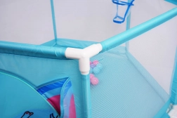 Nella confezione sono incluse 50 palline colorate e all’interno c’è anche un canestro, che favorisce la motricità e l’attività divertente. Il box è facile da trasportare, adatto per interni ed esterni, e le sue superfici sono facili da mantenere.