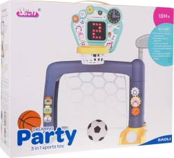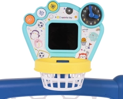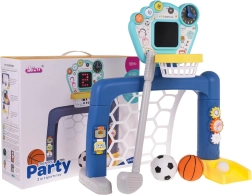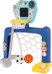 Set interattivo 3 in 1 calcio, basket e golf, per bambini dai 18 mesi. Sulla plancia ci sono tre pulsanti per passare tra le modalità. Il giocattolo è alimentato da 3 batterie AA 1,5 V (non incluse). .Modalità del giocattolo: . - Pulsante FUN: i bambini ascoltano le istruzioni da eseguire e poi le seguono, .- Pulsante MOVIMENTO: avvia le immagini sul pannello insieme a suoni e musica, .- Pulsante SPEGNERE: il bambino controlla i risultati sul pannello. .Funzioni del giocattolo: . - adatto per bambini oltre i 18 mesi, .- 3 giochi tra cui scegliere: golf, basket, barattolo con pallina; diverse possibilità di gioco, .- orologio con lancette mobili per imparare le ore, .- ingranaggi per esercitare la precisione, .- quaderni intrecciati, .- pannello interattivo con effetti sonori e luminosi. |