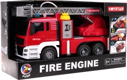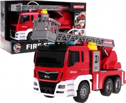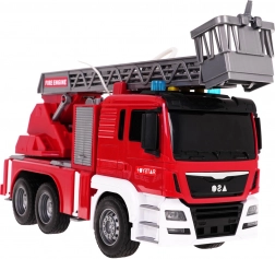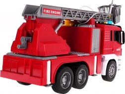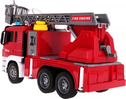 Realistico camion dei pompieri per bambini dai 3 anni in su per piccoli soccorritori, offre tanto divertimento: funzione ad acqua, effetti luminosi e sonori, trazione a frizione (Friction), pneumatici in gomma e scala estensibile e girevole con cestello. Realizzato in plastica di alta qualità con colori vivaci, batterie incluse nella confezione.