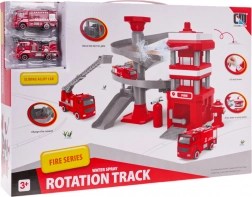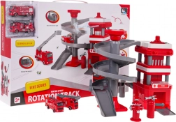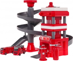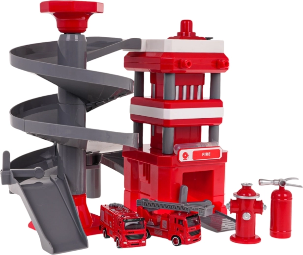 La stazione dei pompieri con rampa a spirale a più livelli, consente ai veicoli dei pompieri di scendere, sviluppando così le capacità motorie dei bambini.