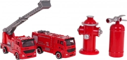 Il set comprende due camion dei pompieri in metallo, di cui uno con scala funzionante che si alza, si abbassa e si estende. Inoltre, il set include un idrante e un estintore, rinforzando scenari di gioco realistici.