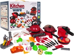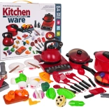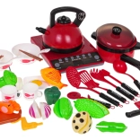Sogni il set da cucina perfetto per i tuoi bambini? Questo set rosso di pentole con cucina è la scelta ideale per bambini dai 3 anni. Offre un totale di 52 diversi componenti, tra cui una cucina interattiva, un bollitore elettrico e altri strumenti da cucina.