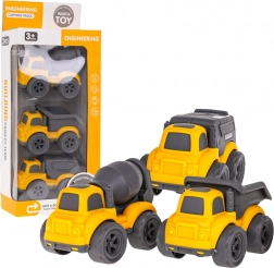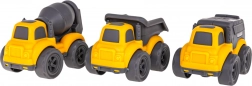 Ogni veicolo del set ha caratteristiche uniche: un'impastatrice per cemento con tamburo mobile, un camion ribaltabile con cassone mobile e un camion con portellone posteriore apribile. Queste caratteristiche consentono ai bambini di partecipare a diversi scenari di gioco.