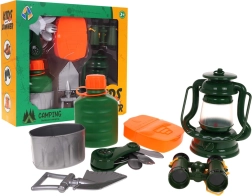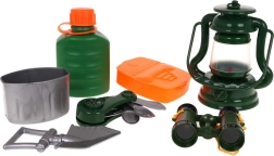 Il nostro Set del piccolo esploratore è ideale per i bambini curiosi che desiderano vivere avventure. Il set contiene strumenti essenziali come lampada, binocolo, dispositivo sconosciuto, borraccia, contenitori per il cibo e una paletta. La lampada è alimentata da batterie tipo 3 x AG13, incluse, e fornisce un'illuminazione adeguata.