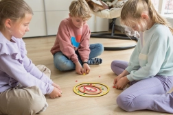Scopri il divertente gioco retrò per 2-4 giocatori, a partire dai 6 anni, che richiede abilità e precisione. L'obiettivo del gioco è far entrare il maggior numero possibile di pulci nei cerchi con il valore più alto. Continua a giocare fino a quando un giocatore non ha tutte le sue pulci all'interno dei cerchi. I giocatori conteggiano i punti e si gioca un altro round. Vince il giocatore che raggiunge per primo 8 punti. Se si gioca in quattro, è possibile giocare anche in squadre di 2 giocatori. Sedetevi uno di fronte all'altro e sommate i punti insieme.