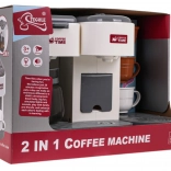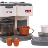 Set interattivo in due pezzi che include una macchina da caffè con erogatore e una macchina a capsule, con un design e funzioni realistici. I bambini possono usare entrambi gli apparecchi contemporaneamente o separarli e giocare con ognuno singolarmente. La macchina da caffè dispone di un vano apribile per il caffè, serbatoio dell'acqua, e tre pulsanti per la preparazione di un caffè piccolo o grande e l'attivazione della funzione acqua. Durante la preparazione, si possono sentire suoni realistici e una lucina rossa lampeggia durante l'erogazione dell'acqua.