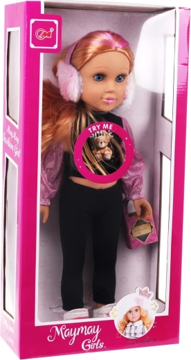 La bambola viene fornita con abbigliamento alla moda che può essere cambiato e accessori come una borsa e copriorecchie invernali.
