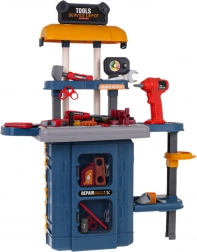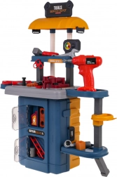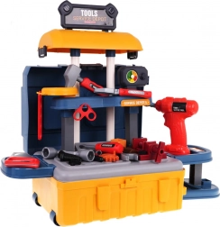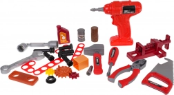 Il set include un trapano elettrico a batteria con punte intercambiabili, chiavi e altri strumenti, come martello, cacciavite e sega. Questo set permette ai bambini di simulare un vero lavoro con gli strumenti, di sviluppare l'immaginazione e di imparare i principi base del lavoro.