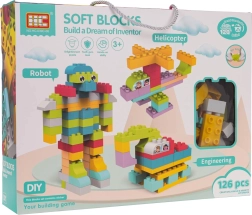 Il set include 126 mattoncini morbidi realizzati in materiale PVC sicuro, senza bordi taglienti e facili da maneggiare. I mattoncini sono progettati in colori vivaci che affascinano e stimolano l'immaginazione dei bambini. Sono molto facili da mantenere: dopo il lavaggio mantengono il loro colore, possono essere piegati e poi ritornano alla forma originale.