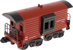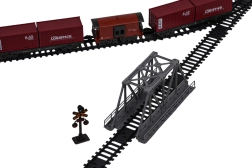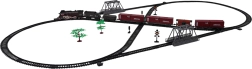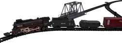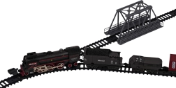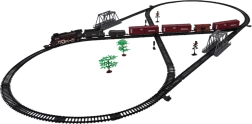 Set di trenino retrò con funzione fumo e suoni di marcia, con binari inclusi nella confezione, adatto ai bambini dai 3 anni in su. Il giocattolo è alimentato da una batteria ricaricabile da 3,7 V (inclusa), il telecomando da 2 batterie AA 1,5 V (non incluse). Il telecomando è anche uno dei veicoli del set. Durante la corsa la locomotiva emette fumo dal camino e dai lati (dopo il riempimento con acqua - pipetta inclusa nel set) e dispone di un faro anteriore. I binari hanno un sistema di collegamento semplice, risultando sicuri e robusti nell’uso. .. Funzioni del set: . - adatto ai bambini dai 3 anni in su, . - fumo che esce dal camino e scende sui lati, .- faro sul frontale della locomotiva, .- suoni di marcia, .- marcia avanti e indietro. |
