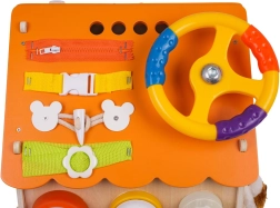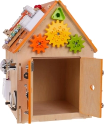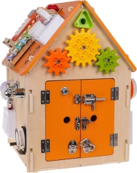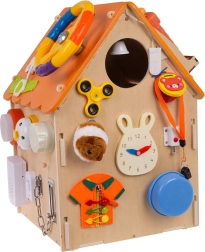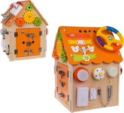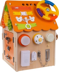 La casetta ha un’illuminazione LED nascosta sotto il tetto. I singoli elementi, come i campanelli, il carillon e il telefono, hanno funzioni sonore. Le funzioni interattive sono alimentate da 7 batterie AAA 1,5 V (incluse nella confezione). Giocare con la casetta stimola lo sviluppo globale dei bambini e li aiuta a imparare a usare gli oggetti di uso quotidiano.