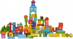 Questo set di costruzioni in legno è un gioco senza tempo per bambine e bambini. I blocchi sono resistenti, piacevoli al tatto e, grazie alla lavorazione accurata senza spigoli vivi, durano anni di gioco. Le diverse forme e colori stimolano la fantasia – i bambini costruiscono facilmente casette, torri e veicoli, mentre le stampe di animaletti, lettere e forme favoriscono naturalmente l’apprendimento.