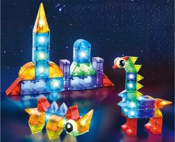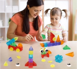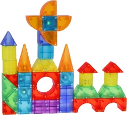 Questo set variopinto di blocchi magnetici permette ai bambini di costruire auto, torri, animaletti e strutture di fantasia. I pezzi in plastica resistente e sicura restano ben uniti grazie ai magneti integrati e i moduli luminosi donano a ogni creazione un effetto spettacolare. Sono incluse istruzioni con diversi livelli di difficoltà, così i bambini sviluppano gradualmente le proprie abilità.