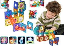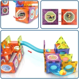La costruzione magnetica con 49 pezzi unisce creatività, effetti luminosi e la dinamica di una pista a biglie. Gli elementi traslucidi blu, arancioni e gialli si collegano con facilità e creano strutture 3D con tunnel, ponti e curve. Le biglie luminose e i moduli retroilluminati aggiungono un aspetto scenografico al gioco e stimolano la curiosità dei bambini.