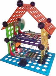 Costruisci un sensore di luce, un riscaldamento elettrico, un sistema di sicurezza domestica, una casa a due piani o un mulino a vento. Schemi chiari e verifica immediata del funzionamento.