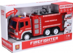 Realistica autopompa per piccoli soccorritori con cannone ad acqua funzionante, effetti luminosi e sonori e una lunghezza compatta di 27 cm. Controllo semplice tramite 4 pulsanti e pratica serbatoio dell’acqua sul tetto per un sacco di divertimento d’azione.