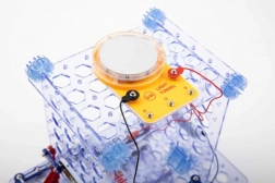 Tutti i pezzi si fissano semplicemente alla griglia trasparente. Il montaggio è rapido, ordinato e ideale per i primi passi nell’elettronica.