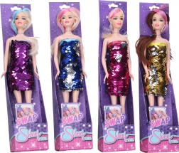 Vestire, pettinare e via in citt0 per divertirsi! Questa bambola alla moda con una striscia colorata nei capelli e abiti con paillettes che cambiano colore al tocco, 8f ideale per ogni bambina.