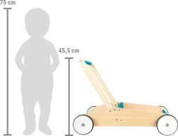 La solida struttura in legno con freno aiuta a controllare la velocità e dà ai piccoli camminatori sicurezza durante i primi passi.