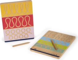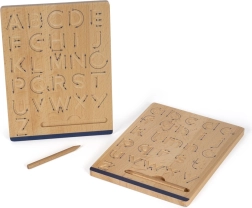 Aiuta i bambini a padroneggiare le basi della scrittura in modo giocoso. Questo set di tavolette da scrittura in legno in legno 100% FSC® offre stencil scanalati di lettere, numeri e forme con indicazione delle direzioni dei tratti. Grazie al legno pesante e alle matite senza mina, i bambini esercitano in sicurezza la corretta presa, la motricità fine e le abilità di coordinazione – senza carta e senza disordine.