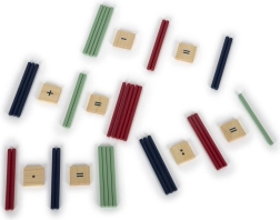 Bastoncini, cubetti e simboli colorati permettono ai bambini di vedere e comprendere passo dopo passo addizione, sottrazione, moltiplicazione e divisione.