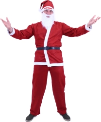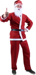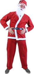 Questo costume comprende tutto ciò che serve per il classico look di Santa: giacca, pantaloni, cappello e cintura.