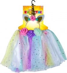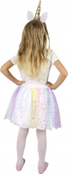 Trasforma il tuo bambino in un magico unicorno con questo costume colorato, che include una gonnellina tutù e un cerchietto da unicorno. Questo set è ideale per i bambini che vogliono vivere avventure fiabesche durante il gioco. La gonna è decorata con tulle colorato con motivo di stelline ed è progettata per adattarsi facilmente grazie alla vita elastica.