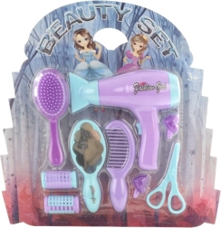 - Phon, pettine, spazzola, 2× bigodini, 2× mollette, forbicine