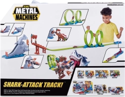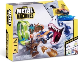 Questo emozionante set da corsa Metal Machines è un grande giocattolo per tutti i piccoli appassionati di motori, che amano le acrobazie. Costruisci il tuo circuito da corsa lungo 2,63 m con due anelli e lascia che la tua macchinina voli direttamente nelle fauci dello squalo. Il giocattolo offre non solo un'azione unica, ma anche ore di divertimento pieno di adrenalina.