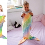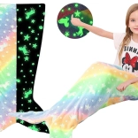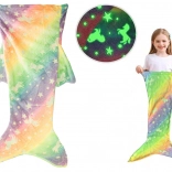 Scoprite il compagno perfetto per il relax: una coperta morbidissima e calda a forma di coda di sirena. I colori arcobaleno e i dolci motivi di unicorni e stelline donano alla cameretta un’atmosfera allegra – e quando spegnete la luce, le decorazioni brillano magicamente. Perfetta per leggere, guardare cartoni, giocare e riposare il pomeriggio.