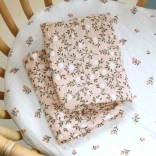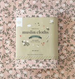 Set di due mussole in 100% cotone biologico con delicata stampa floreale. I teli sono leggeri, assorbenti e traspiranti, ideali per l’uso quotidiano durante la poppata, il cambio e il bagnetto. Le dimensioni di un singolo telo sono 60 × 60 cm.