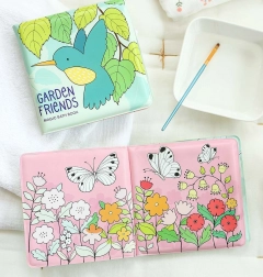 Questo libretto magico da bagno trasforma ogni bagnetto in un gioco creativo. Appena le pagine si bagnano, le illustrazioni prendono vita con colori vivaci e i bambini scoprono gli animaletti che possono incontrare in giardino o nel prato. Fuori dalla vasca basta prendere un pennello bagnato e iniziare a dipingere – quando si asciuga, il colore scompare e il divertimento può ricominciare.