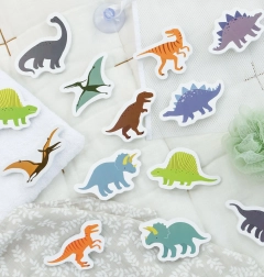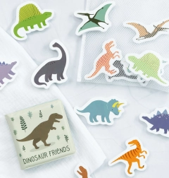 Divertimento in vasca senza disordine – 14 pezzi in schiuma con simpatici dinosauri che, una volta bagnati, si attaccano alle pareti della vasca o alle piastrelle del bagno. Dopo il bagno riponili semplicemente nella retina con ventose, che mantiene tutto in ordine e a portata di mano.