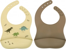 - 2 bavaglini in silicone (1x con motivo dinosauri, 1x tinta unita)