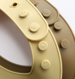 Il silicone impermeabile si pulisce con una passata o un risciacquo. I bavaglini possono essere lavati in lavastoviglie fino a 70 °C e si arrotolano facilmente per i viaggi.