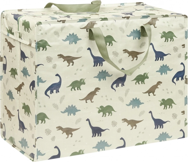 La pratica borsa XL portaoggetti con motivo di dinosauri è perfetta per riporre vestiti, coperte e giocattoli, ma anche per la spiaggia o la piscina. È realizzata in plastica riciclata, ha una chiusura con zip e, una volta piegata, occupa pochissimo spazio.