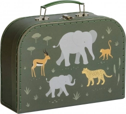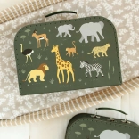 Elegante set di due valigette di cartone con motivo di animali della savana, perfetto per bambini e genitori. Offre una pratica sistemazione per giocattoli e materiale creativo, ed è realizzato in cartone resistente con robuste maniglie e chiusura in metallo per una chiusura sicura.