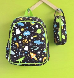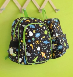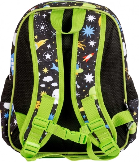 Zainetto per bambini dallo stile spaziale, ideale per l’asilo e per le gite. Offre una capiente tasca principale, una tasca anteriore isolata per la merenda e due tasche laterali per la borraccia. Per comfort e sicurezza ha spallacci imbottiti, cinturino pettorale antiscivolo e schienale imbottito e traspirante.